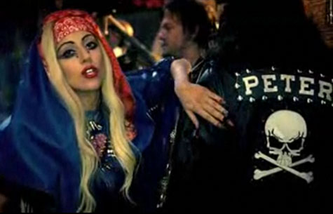 When they dismount the bikes, its clear that they are at the feast that Jesus and all his disciples attend the night before Jesus’ crucifiction. In the bible, this is where Jesus is betrayed, and denied by Peter, who make a small cameo in the video as well.  At 2:27 She gives “props” to Peter with the lyrics “Build a house or sink a dead body” Peter not only denied Jesus on the fateful night that this video takes place, he also sinks when he trys to walk on water with Jesus, but cant because he loses his faith. The fact that she points to him on this lyric is telling. Peter lost faith in Jesus several times. Gaga is not losing faith, but betraying both her personalities in the video, so perhaps she is making this point clear, That her allegiances are many, but she never, ever loses faith. For to her, only dead bodies sink. The dead, lifeless body of someone who has lost faith.